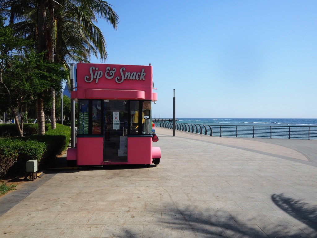 The Island Mosque is a mosque built in 1986 designed by Egyptian Architect Abdel-Wahed El-Wakil. Prior to the construction of the Jeddah Corniche area in 2017, The Island Mosque was built on a small rock island connected via narrow walkway. Now it is part of the concrete walkway portion of the corniche, connected to Dunkin’ Donuts approx. 50 yards away. Across the Red Sea, around 141 miles directly due East of Sudan, lays the Jeddah Corniche – a roughly 18 mile stretch of waterfront along the city that was developed mainly into a pedestrian walking area directly along the water with hotels and office buildings just inland. One of the most popular areas of the Jeddah Corniche is a 2 mile portion along the North-South running Al Kurnaysh Branch Road, which begins in the south near The Island Mosque and ends up near a new mall being developed in the North (not sure of the name). Along this portion is a walking pathway lined with benches, palm trees, art installations, fountains, and different fare ranging from the commercial McDonald’s, Al Baik, and Dunkin’ Donuts, to the more local Corn in a Cup.