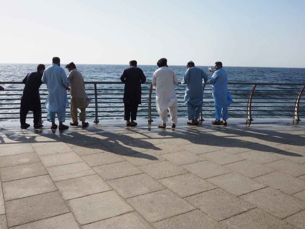 Behind The Island Mosque are birds and sightseers looking towards Sudan in the West. The Jeddah Corniche remains one of my favorite places in the Jeddah/Makkah region. Despite the heat of the sun, it is usually breezy, there are amenities around if you become hungry or thirsty, and it is a melting pot of folks all enjoying the same coastal ambiance.