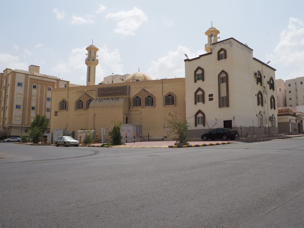 The average neighborhood in Makkah has quite a few masjids (mosques). In Al Hamra alone, there are approximately 14, with at least 2 under construction (that I have counted) – not counting prayer rooms often found at gas stations. They can take on a variety of different architectural styles, and are often named by the person who had the masjid built. Here are a few snapshots of the mosques in Al Hamra.